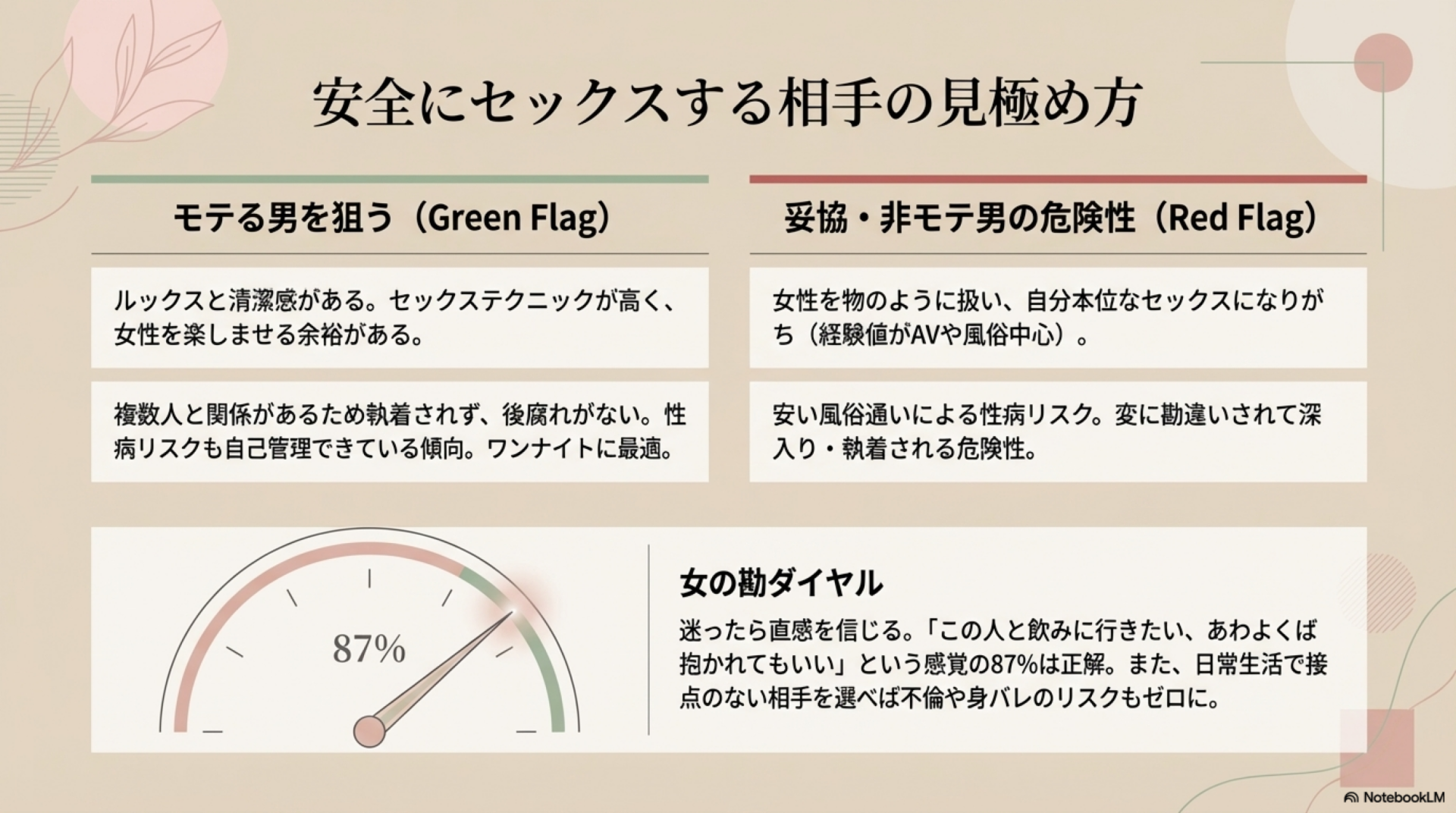 「この人と飲み行ったら楽しそう」「最悪抱かれてもいい」と感じたら、その男は**ちゃんとモテる安全な男である確率が87%**です。