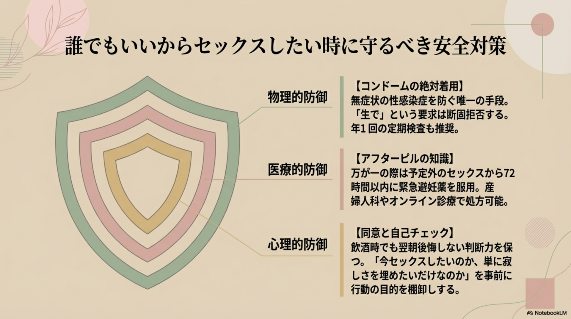 誰でもいいからセックスしたいと思っても、安全性は最優先で考える必要があります。特に知らない相手とのセックスでは、性感染症や望まない妊娠のリスクが高まるため、正しい知識と対策が不可欠です。