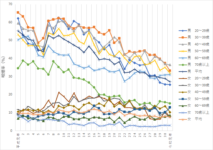 健康意識の高まりにより、喫煙者への風当たりが年々強くなっています。男性の喫煙率は25.6%まで減少し、恋愛市場でも明らかに不利な状況が生まれています。